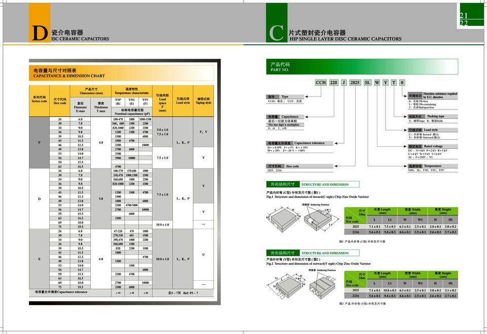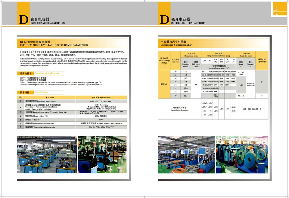 Temperature characteristic:YSP YSU, Z5U, YSV, YR, CO, SL