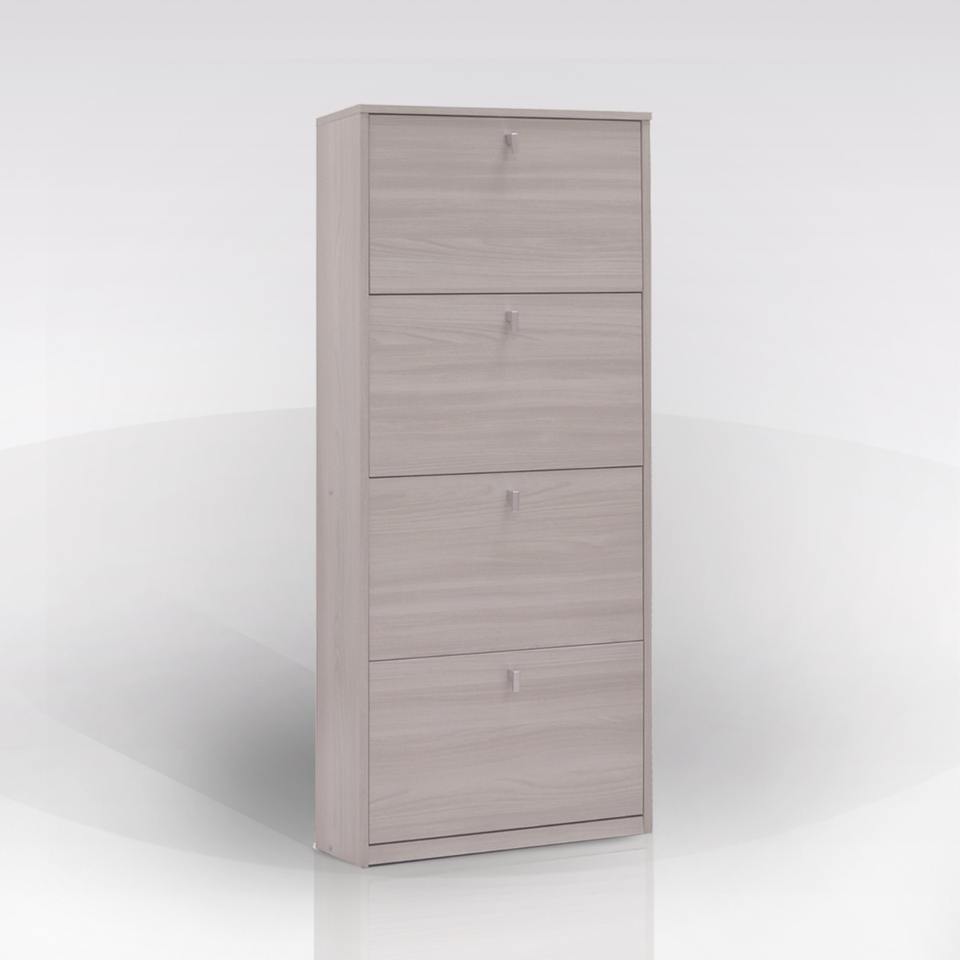 Zapatero con 4 puertas abatibles de 63x18 cm, altura 154 cm, madera de olmo
