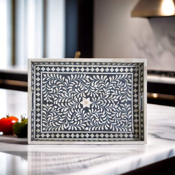 BANDEJA CORTA CON INCRUSTACIONES HECHO A MANO BANDEJA DE LUJO Incrustaciones de huesos Ramadán Desayuno Comida Fruta Café Té Bandeja decorativa