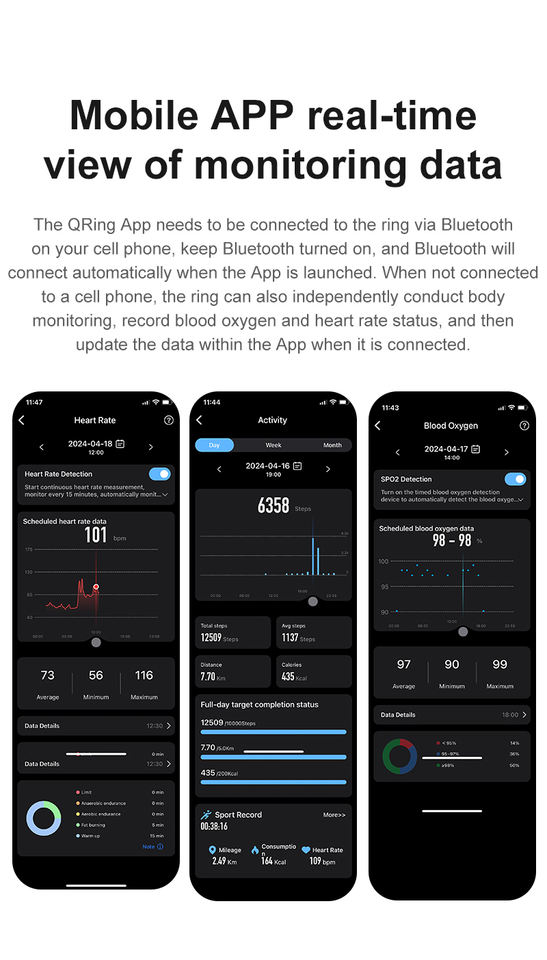 Uso:Frecuencia Cardíaca/Sueño/Oxígeno en Sangre/Estres/VFC/Tomar Fotos