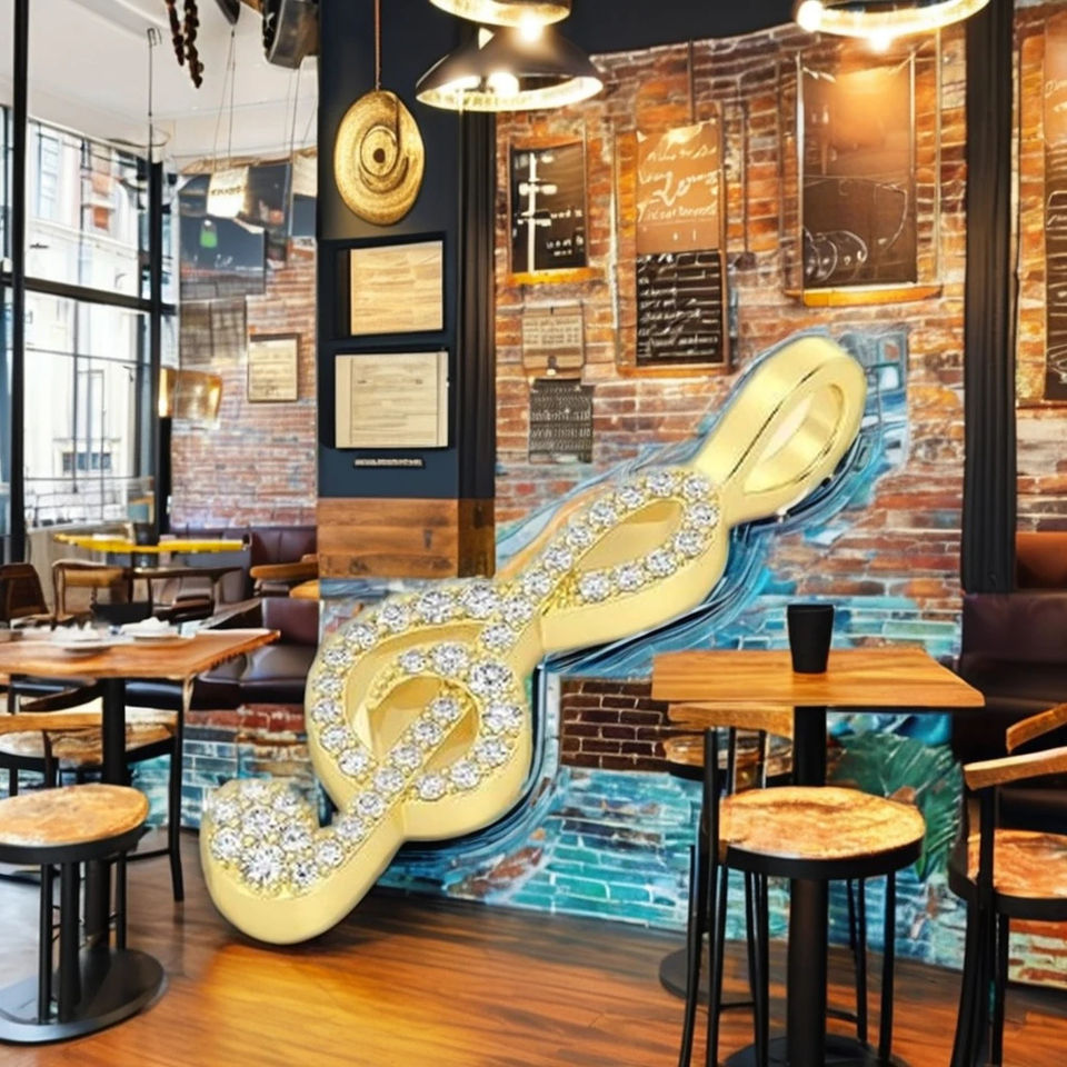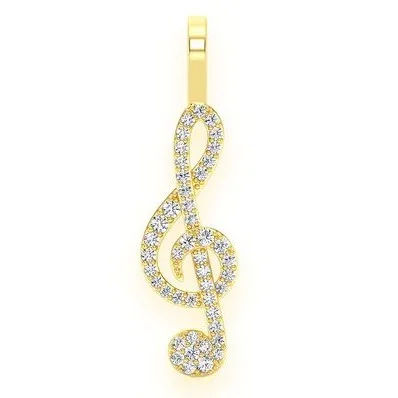 SHRAMAN JEWELS Colgante Musical Personalizable de Oro Amarillo de 10K con Baño de Rodio y Diamante Natural en Forma de Clave de Sol, Amuleto Unisex para Amantes de la Música