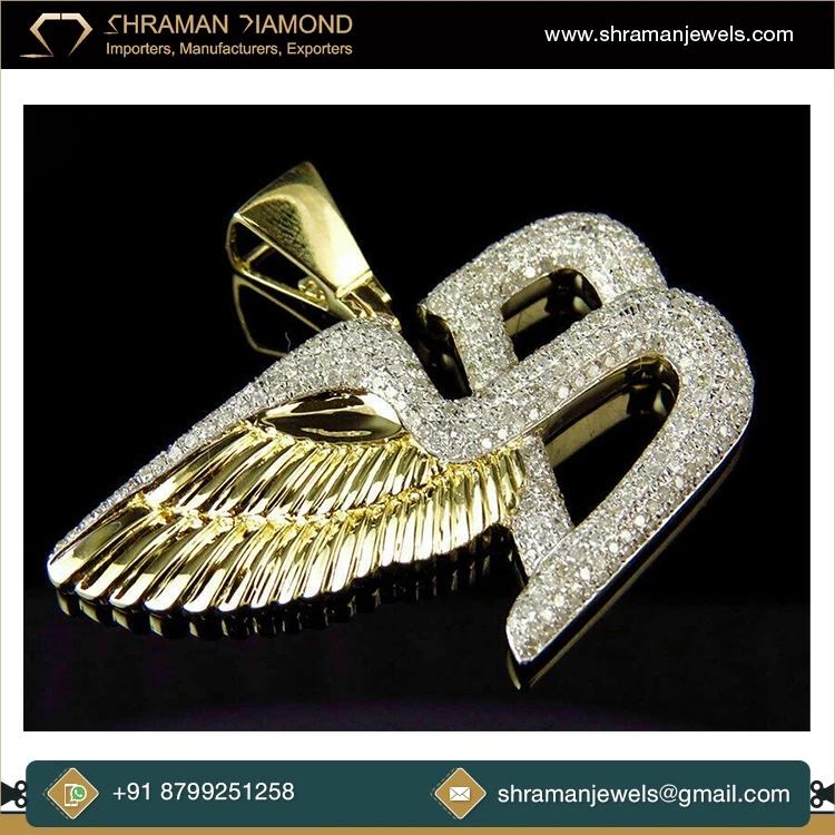 SHRAMAN DIAMOND Colgante Fino de Plata de Ley 925 con Moissanita y Letra Inicial B Personalizada, Chapado en Rodio, Estilo Hip Hop para Hombre
