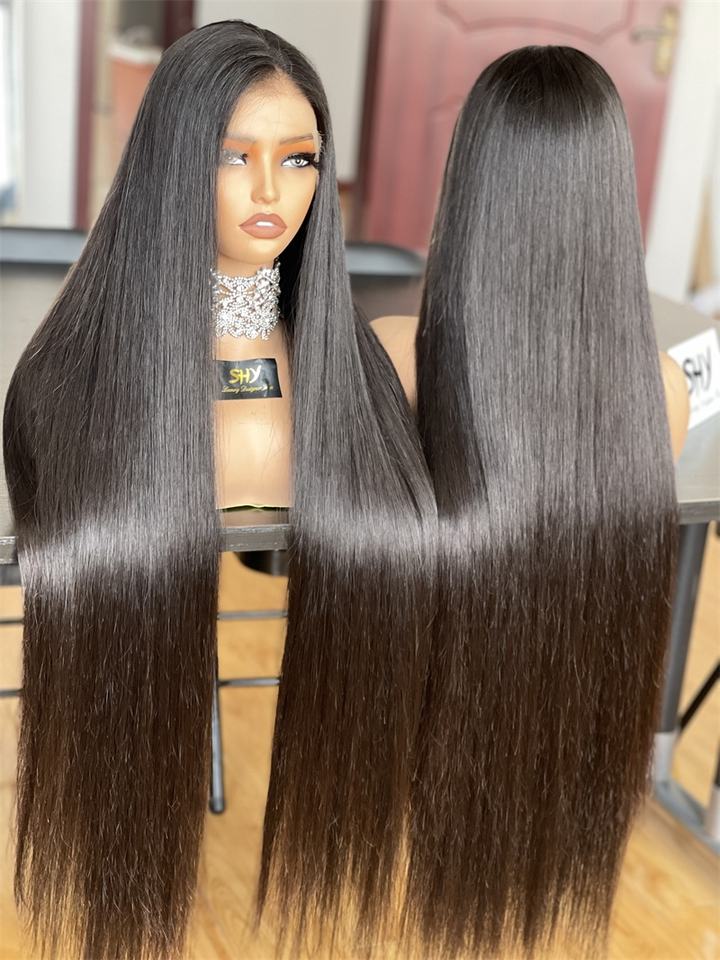 SHY Personalizar Color Natural 13*6 Peluca Frontal de encaje 36 pulgadas Seda larga Recta para mujeres con línea de cabello prearrancada