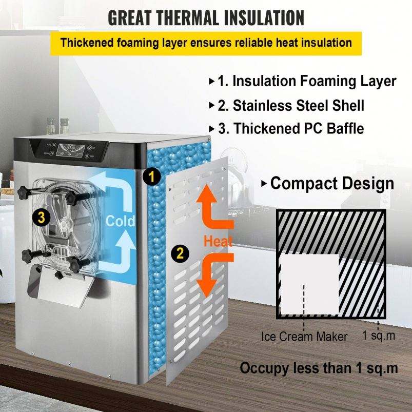 Máquina de helado duro 1400 V/110V, 220 W, 20L/H, 1/2/V
