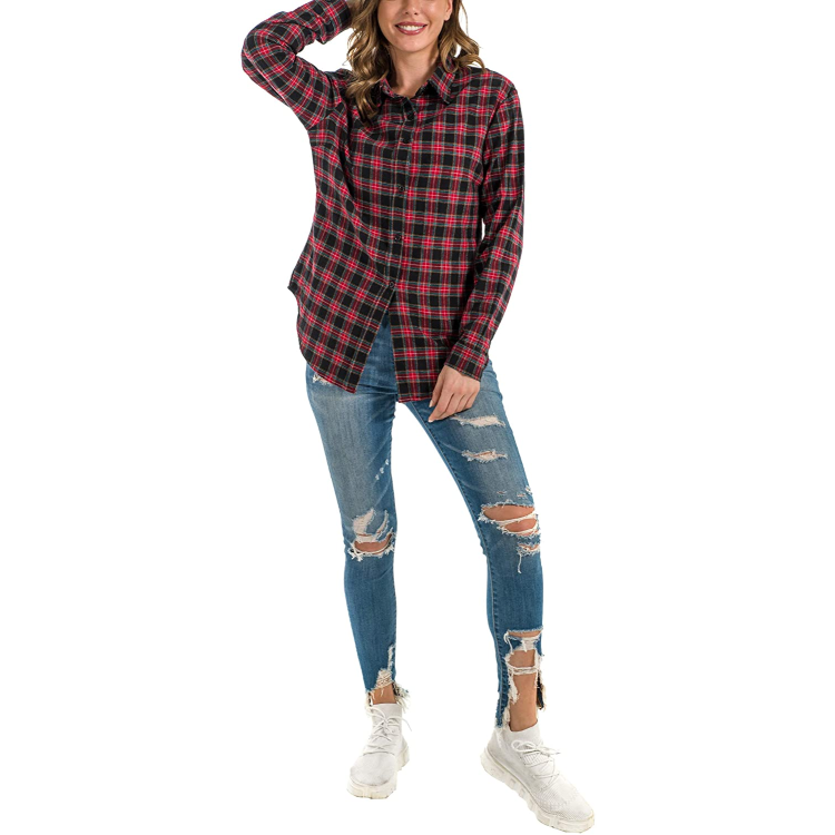 SIBRIN fábrica hecha con logotipo personalizado New Look elegante algodón franela tartán camisa poliéster algodón mezcla para hombres y mujeres camisa a cuadros