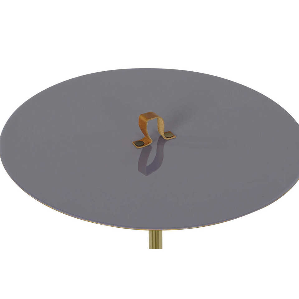 Mesa Auxiliar de Hierro y Cuero 40x40x56 con Asa Lacada
