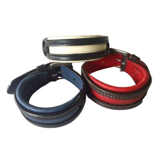 Collar de perro acolchado de cuero con incrustaciones de canal vacío