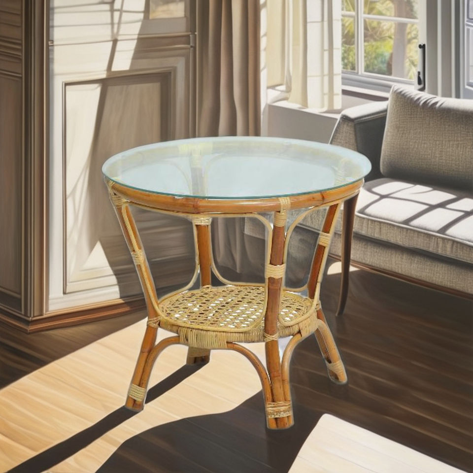Mesa de Centro de Ratán Minimalista Hecha a Mano SIENTA, Cómoda para el Hogar, la Oficina o la Entrada