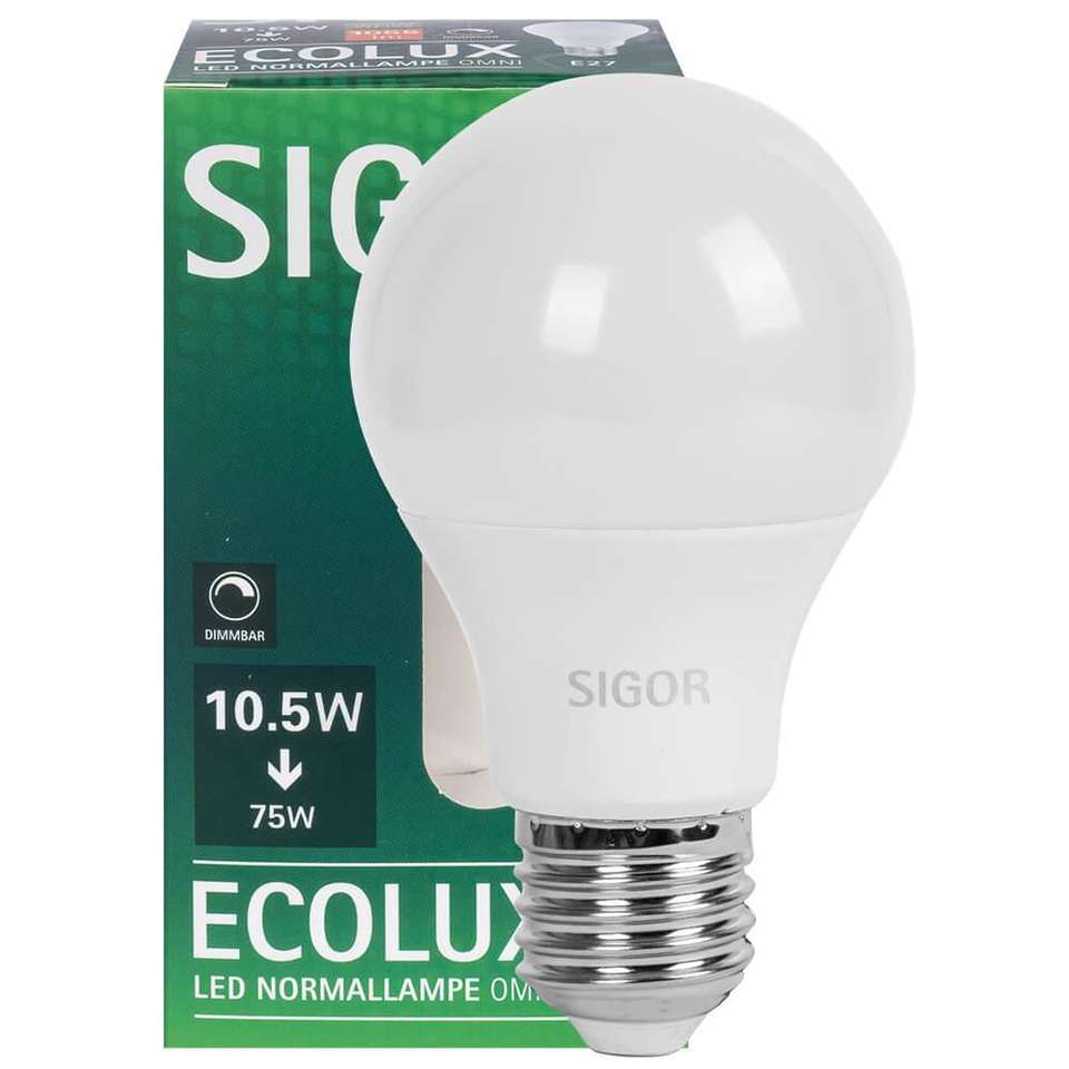 Bombilla LED SIGOR ECOLUX 10.5W E27 2700K Regulable para Iluminación Interior