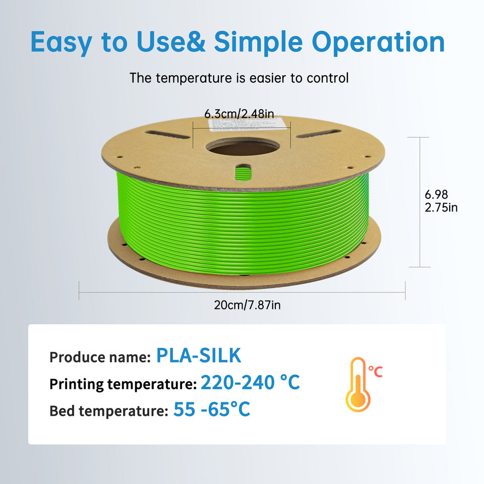 Impresión 3D VERDE SEDA 1kg 1,75mm Varillas de plástico de moldeo de color verde Alta calidad Nueva parte superior 330m Longitud 1kg Netweight