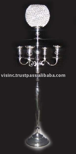 De plata acabado alto decoración de la boda y de la Iglesia, decoración de globo de cristal en el centro superior candelabro
