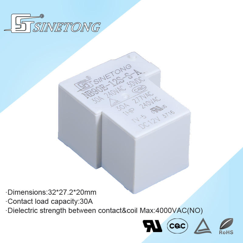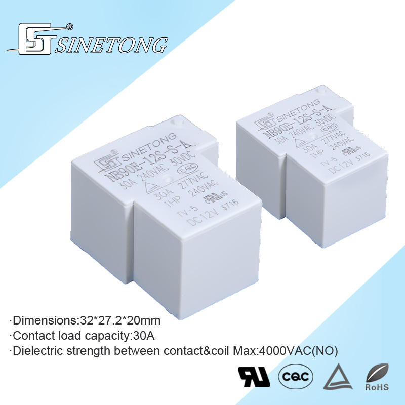 Relés de Potencia SINETONG NB90E-12S de 30 Amperios, 12V/24V, 4 Pines, SPST, 1NO, Relé T90 para Electrodomésticos
