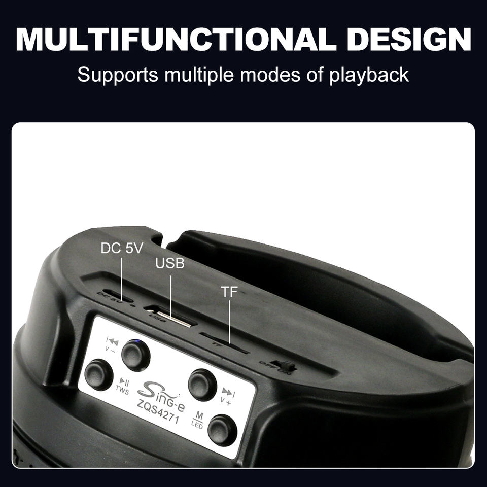 SING-E ZQS4271 doble, altavoz Bluetooth inalámbrico portátil de 4 pulgadas con graves potentes y luz LED RGB