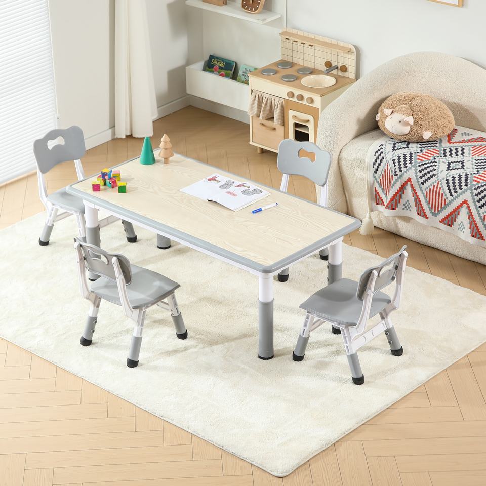 SINKIPA - Juego de Mesa de Estudio Multifuncional Ergonómica Moderna de Plástico con 4 Sillas, Altura Ajustable, Escritorio para Dibujar, Oficina en Casa