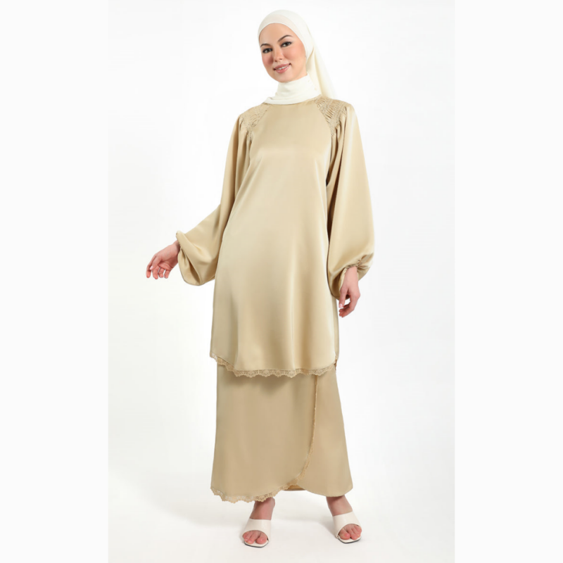 SIPO Malasia, conjunto de pantalones de 2 piezas a la moda para mujer, patrón sólido, tops musulmanes y pantalones largos y modestos, estilo informal