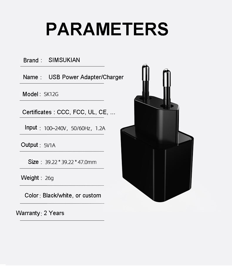 SK12G US AU UK EU enchufe 5W FCC aprobado 5V2A cargador USB 5V 1A DC iPhone cargador HECHO DE PC y ABS