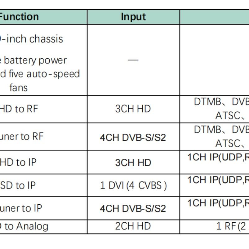 Salida:IP/RF/ATSC/DVB-C/DVB-T/DTMB/ISDB-T