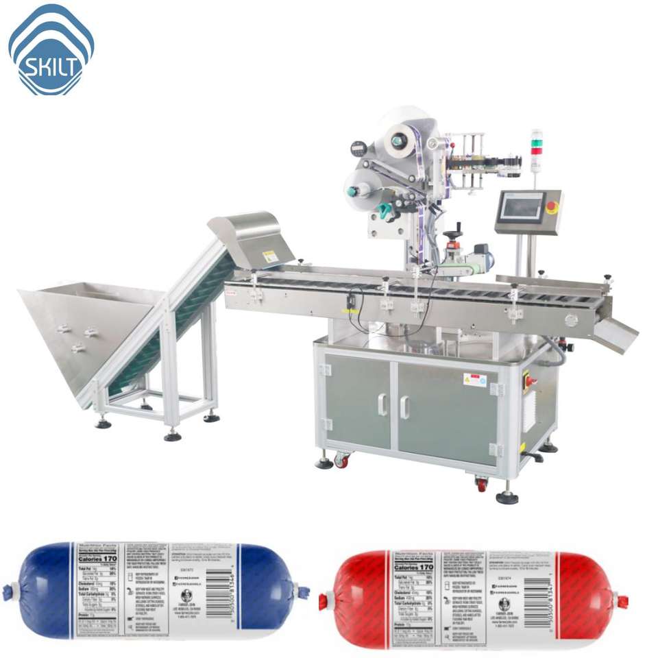 Máquina Etiquetadora Automática de Salchichas SKILT, Aplicador de Etiquetas para Salchichas con Alimentador