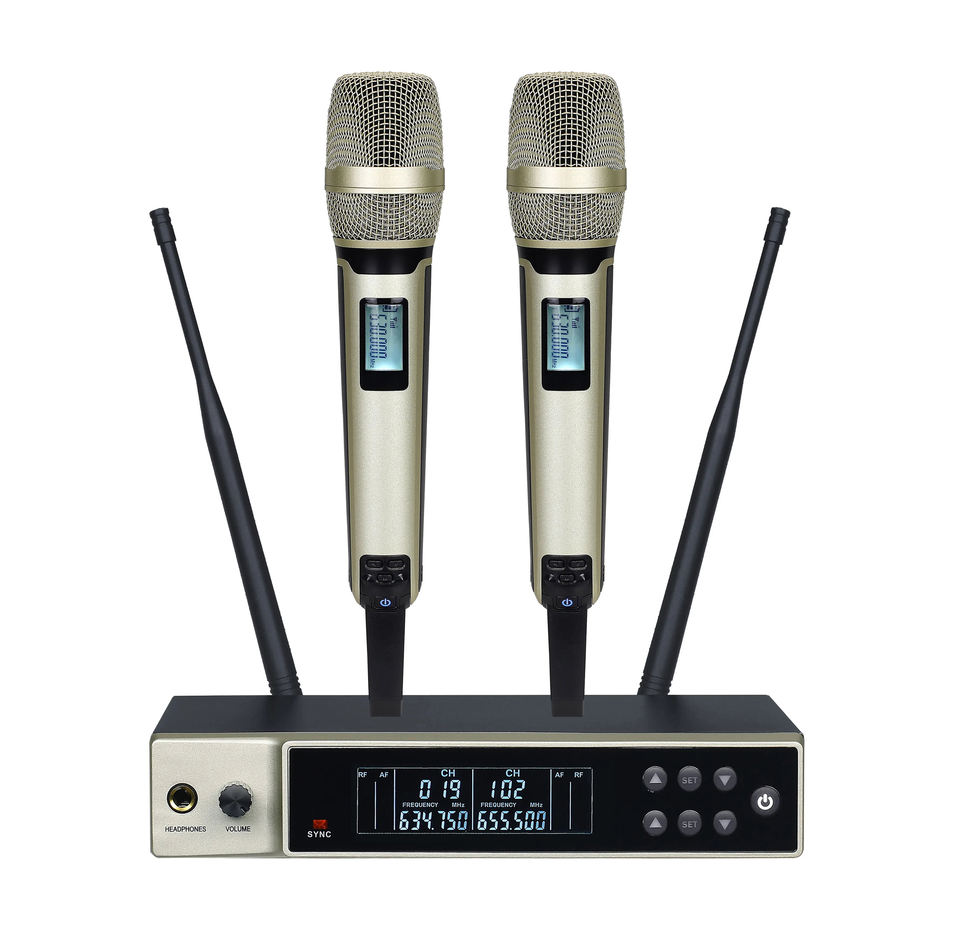 SKM9000 UHF 200 con conversión de frecuencia, adecuado para actuaciones en iglesias y escenarios, micrófono inalámbrico de mano metálico de doble canal