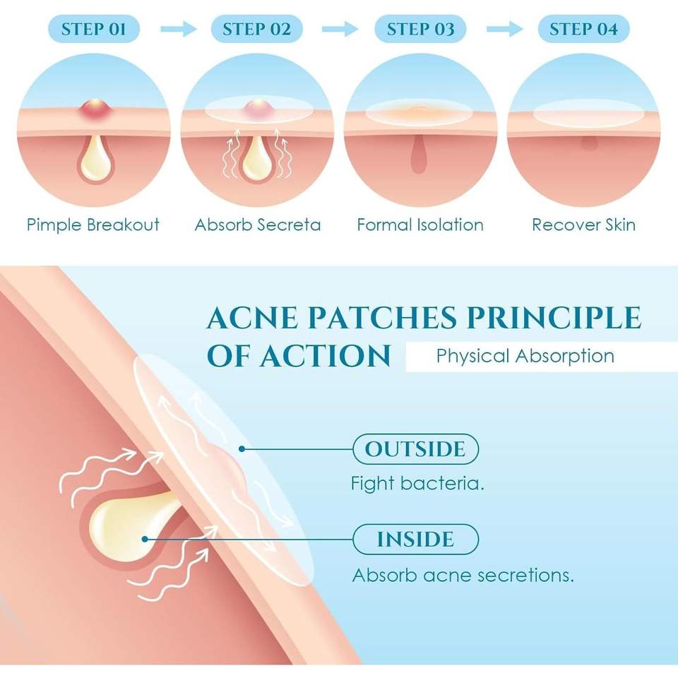 SKY-TOUCH TRADING FZE 1 Paquete (36 Parches) Parches Invisibles Impermeables para el Acné y las Espinillas, Antiarrugas, con Aloe Vera y Ácido Salicílico, Marca Privada