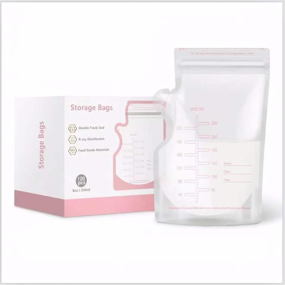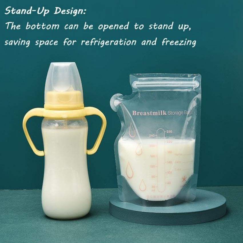 SKY-TOUCH 120PCS Bolsas de almacenamiento de leche materna preselladas higiénicamente 250ml Sin fugas Doble autoestable Sin BPA