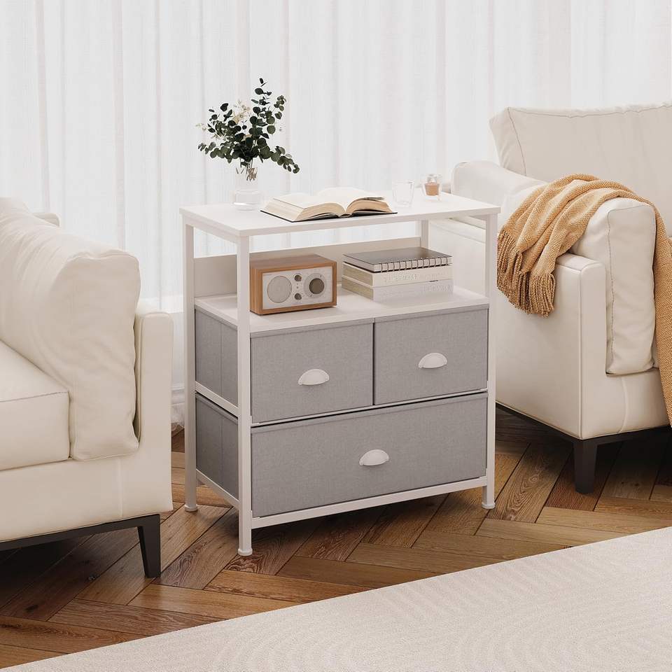 SKY-TOUCH 3 cajones de tela mesita de noche cofre de almacenamiento hogar sala de estar dormitorio entrada gabinete estantes para organización de ropa