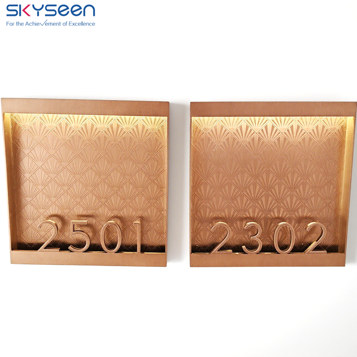 SKYSEEN personalizado 3D letras de Metal tiras de luz LED números de casa cuadrados con patrones para construir apartamento Hotel puerta casa
