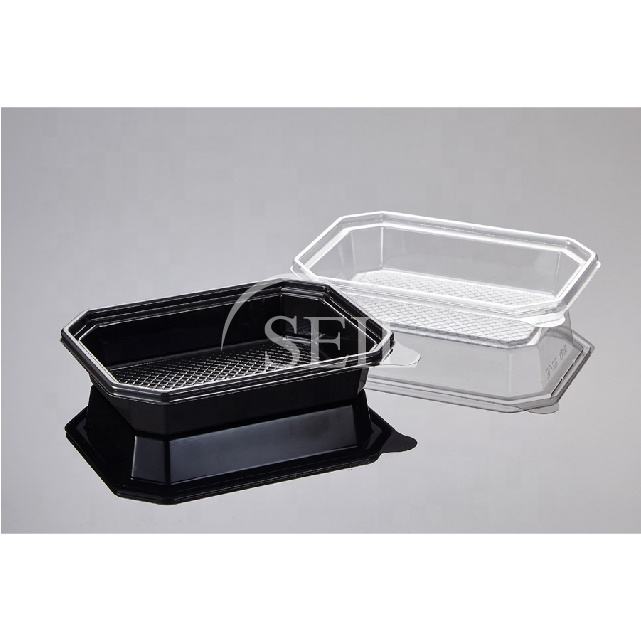 Fiambrera desechable de plástico transparente para llevar comida, SL-201, 150ml, color negro, embalaje de plástico coreano
