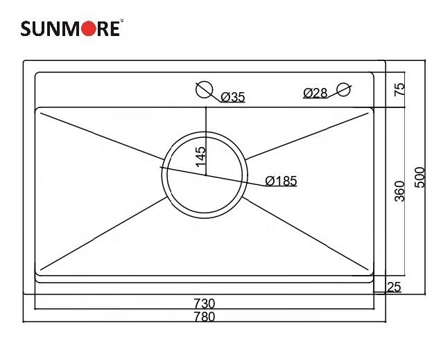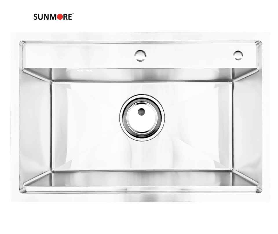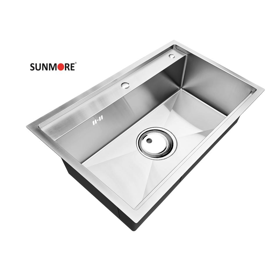 Fregadero de cocina de acero inoxidable SM 7850 de un solo tazón, nuevo diseño, forma rectangular multifunción con dos agujeros, fábrica directa de Vietnam