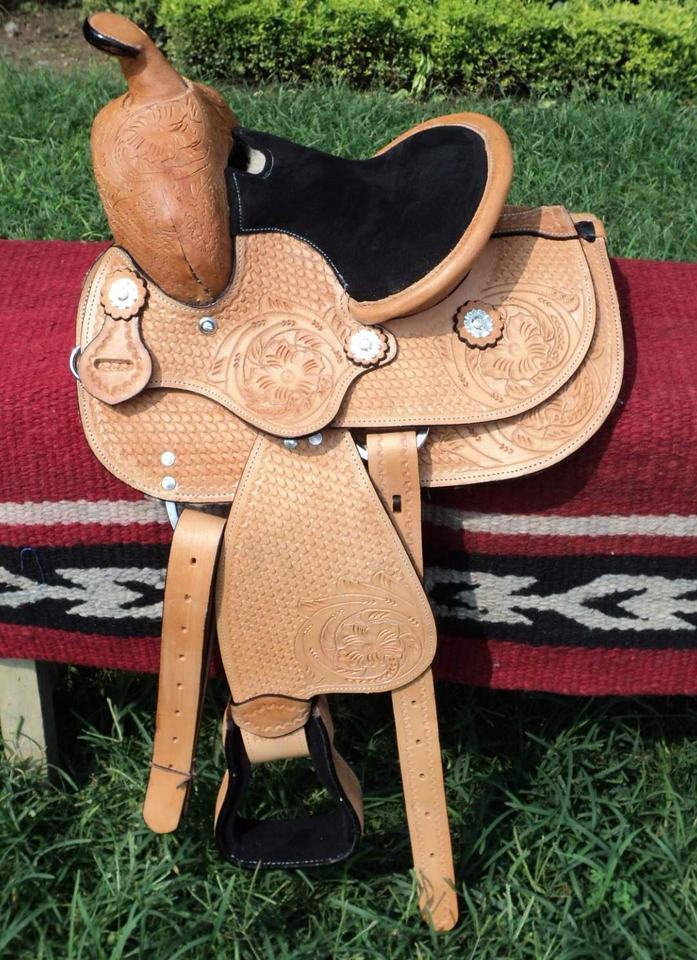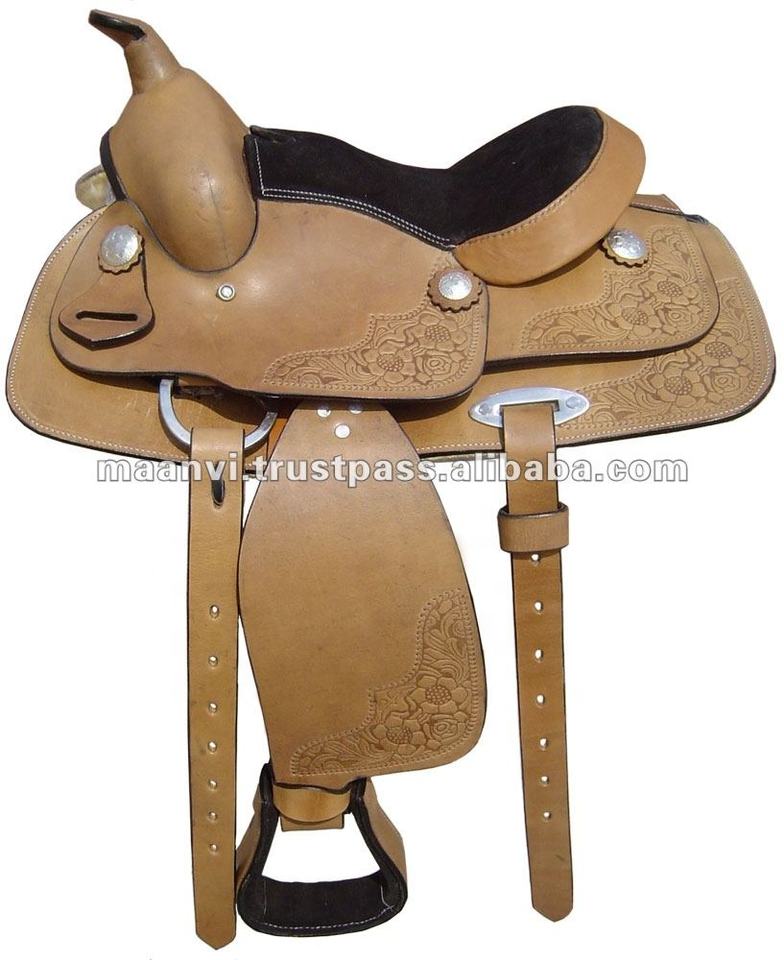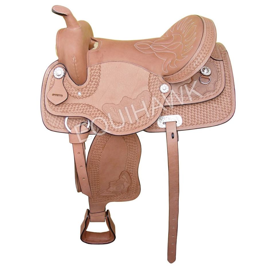 Silla de montar western de cuero con asiento de gamuza suave, diseñada a medida para equitación, con estructura de fibra de vidrio EQUIHAWK MVE-WS-671