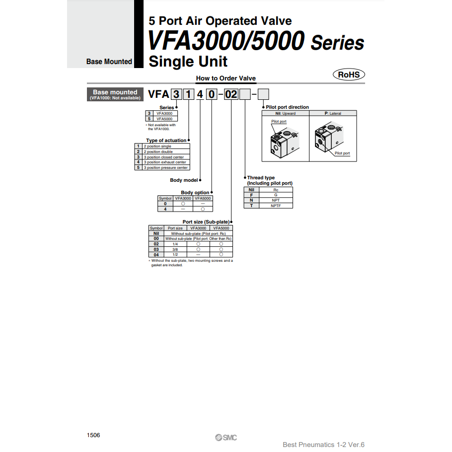 Válvula de control neumática SMC Pneumatics modelo VFA5244