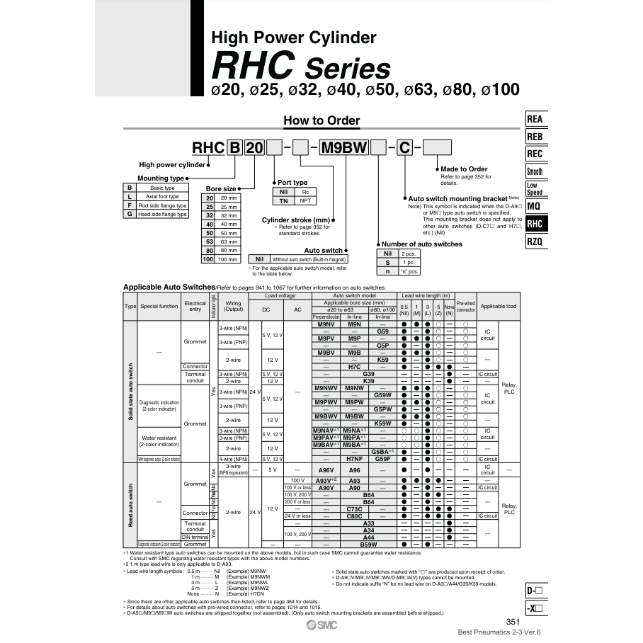 Cilindro de alta potencia SMC Pneumatics, piezas neumáticas