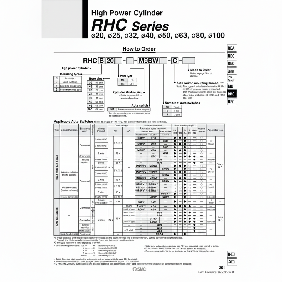 Cilindro de alta potencia de SMC Pneumatics, piezas neumáticas de RHCB25-580