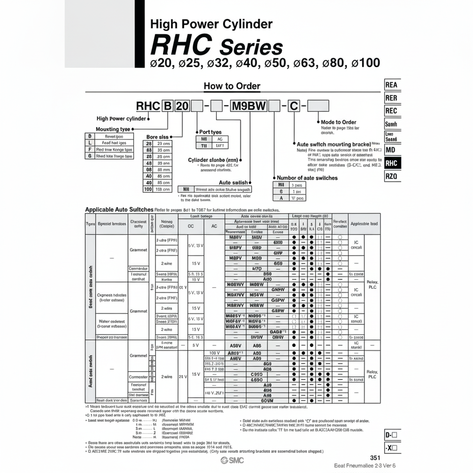 Cilindro de alta potencia de SMC Pneumatics, piezas neumáticas de RHCF40-300