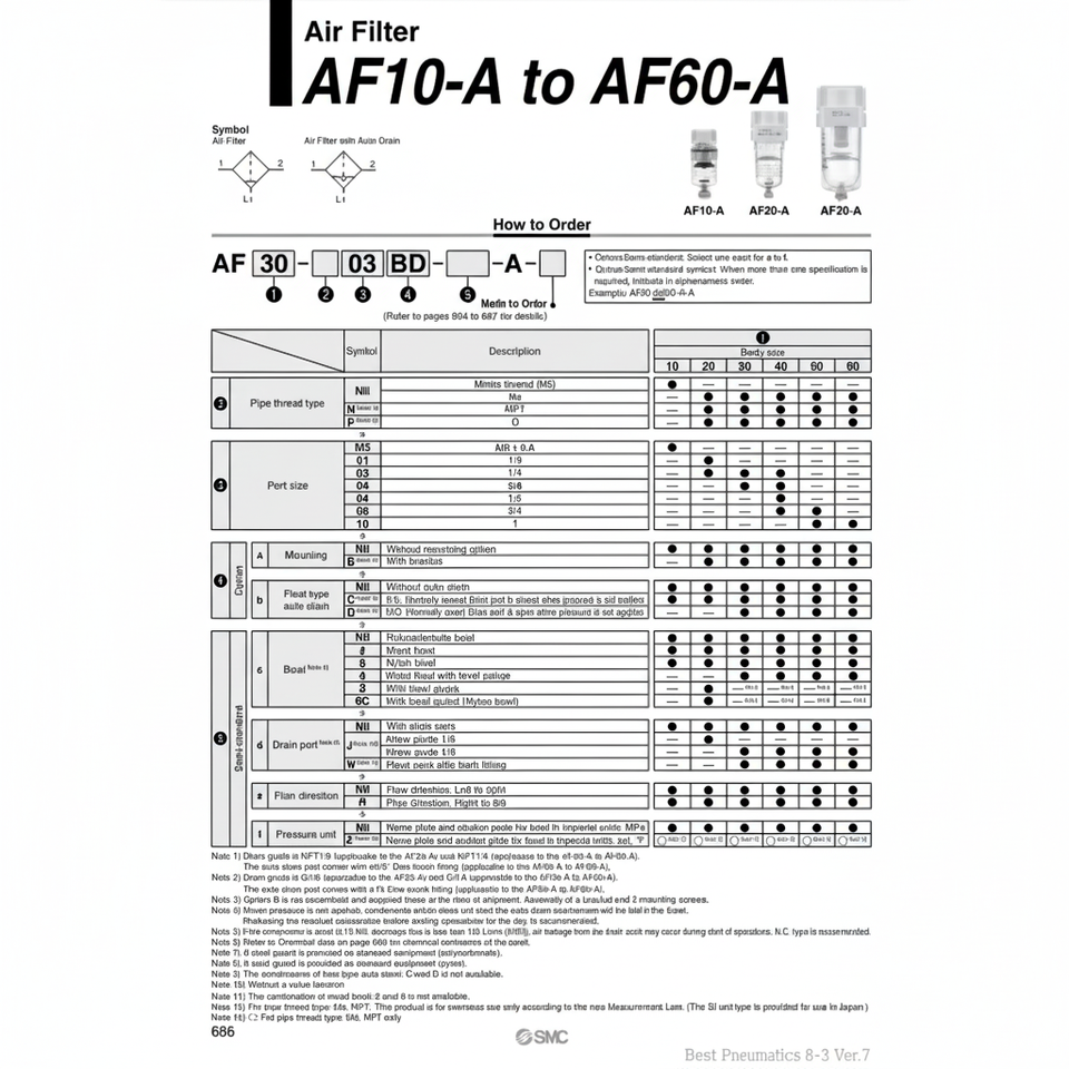 Filtro de aire SMC Pneumatics de tipo modular para el aire,