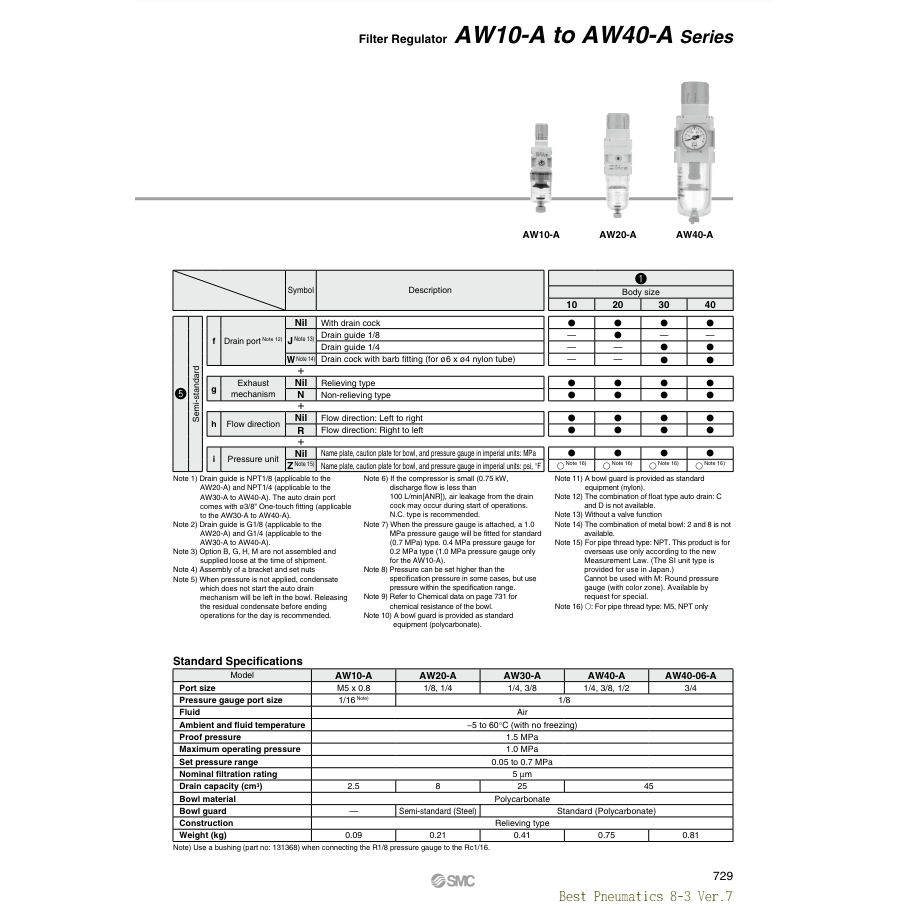 SMC Pneumatics Tipo modular Regulador de filtro de AW20-02BCG-A Piezas neumáticas