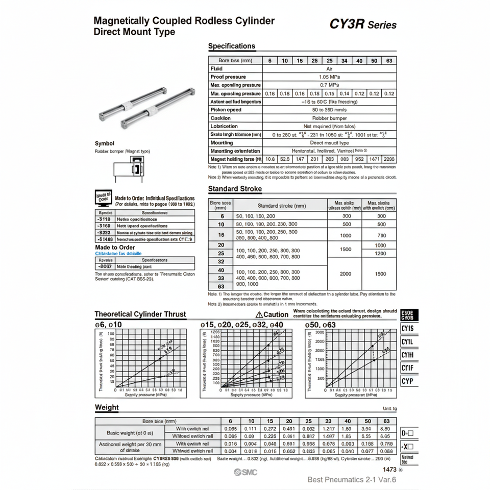 Cilindro sin vástago SMC Pneumatics, modelo, piezas neumáticas