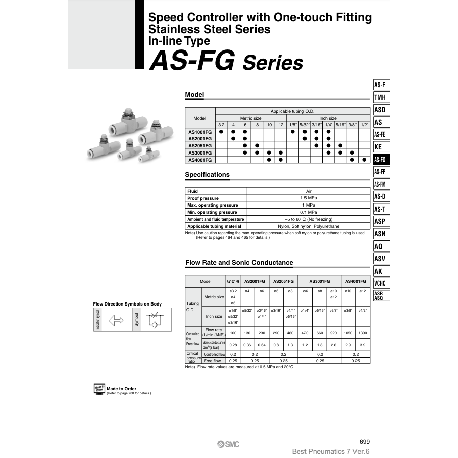 Controlador de velocidad SMC Pneumatics Piezas neumáticas