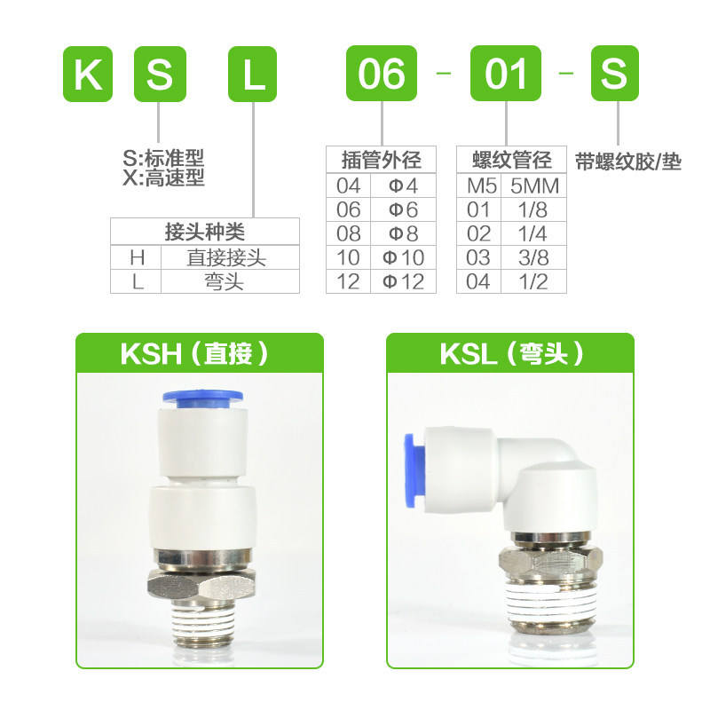 Acoplador Rápido SMC KXH04 06 08 10 12 M5 M6, Conector Neumático con Rosca Externa