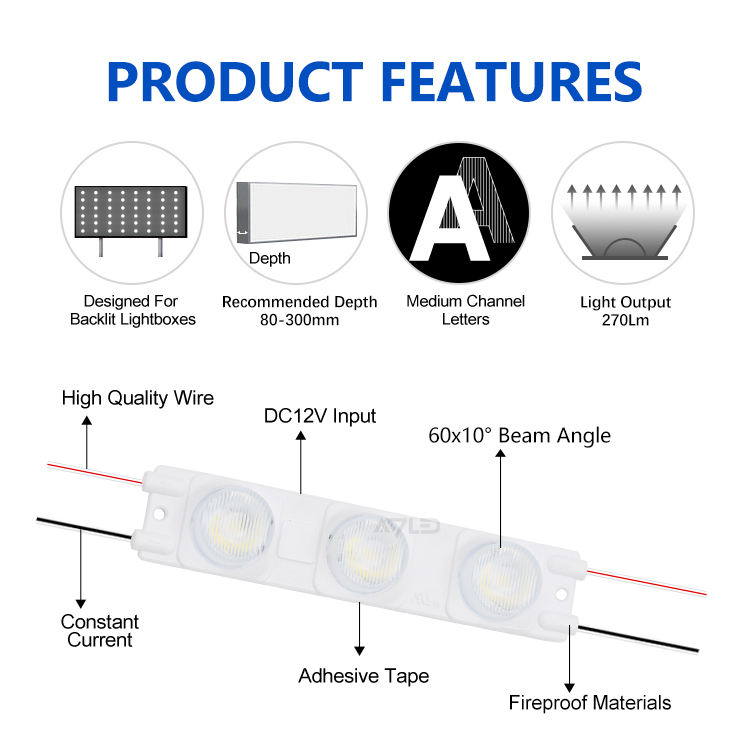 SMD 3030 IP65 impermeable decorativo retroiluminado letra signo publicidad LED módulo 3 vatios DC12V 3 luces inyección para uso al aire libre