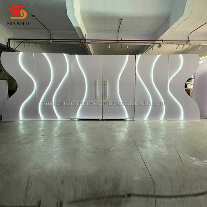SMOOTH 2025 Venta caliente boda Led fondo móvil blanco PVC telón de fondo con manija de puerta para decoración de escenario de boda
