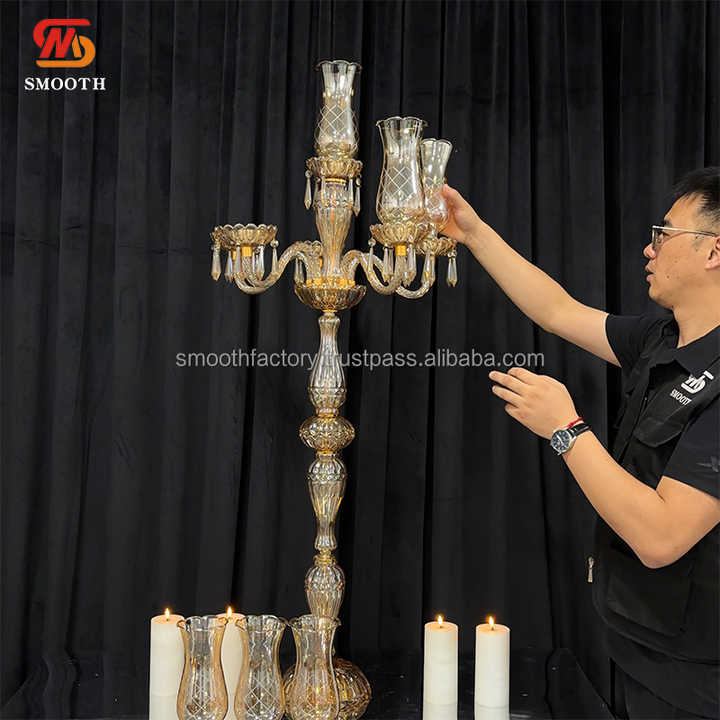 Candelabro de cristal de Color dorado de 6 brazos suaves para eventos y fiestas del Día de San Valentín, candelabros elegantes para Decoración de mesa