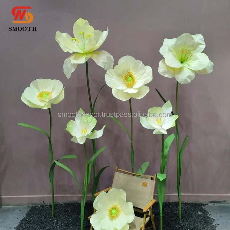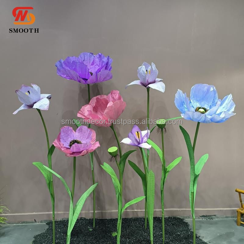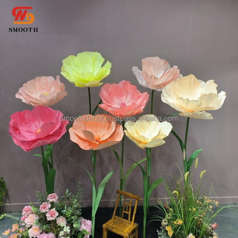 Flores gigantes artificiales suaves, juego de amapolas de tela de hierro personalizado, modelo 250617006, decoración adecuada para fiesta de boda, ventana de centro comercial