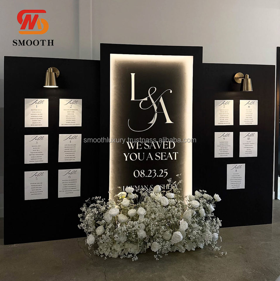 Suave negro acrílico boda evento pantalla acrílico Pvc Fondo boda evento decoración geométrico Rectangular soporte