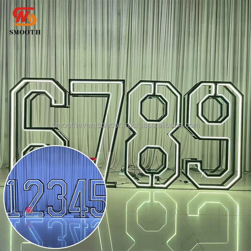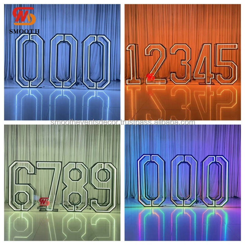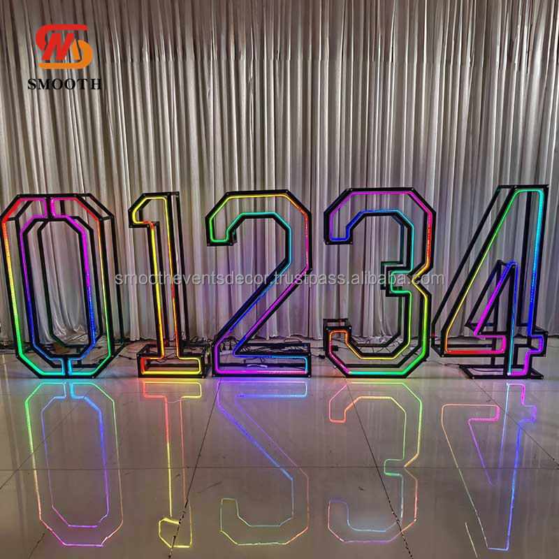 Tira de Luces LED RGB SMOOTH Cool para Números, Fondo con Marco Metálico Negro Gigante de 4 pies, Luces de Números para Fiestas