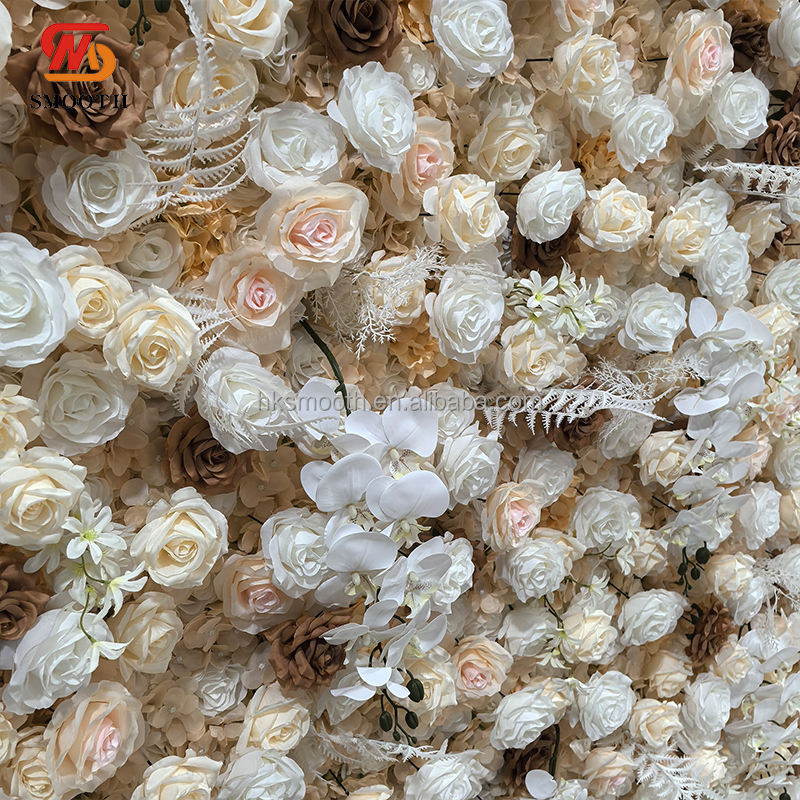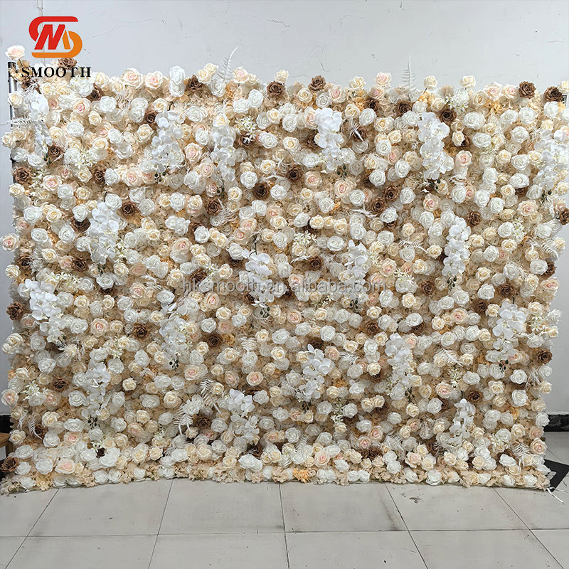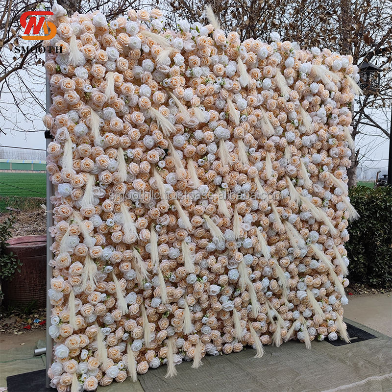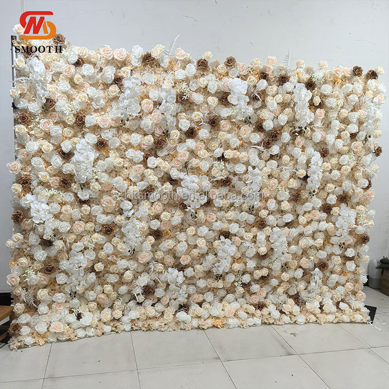 Muro de flores de color rosa champán con diseño personalizado y base de tela suave para eventos de fiestas de cumpleaños