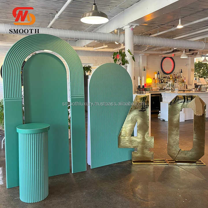 Fondo acrílico verde tallado ahuecado personalizado liso, conjunto de arco de fondo de boda UV para decoración de eventos de escenario de boda