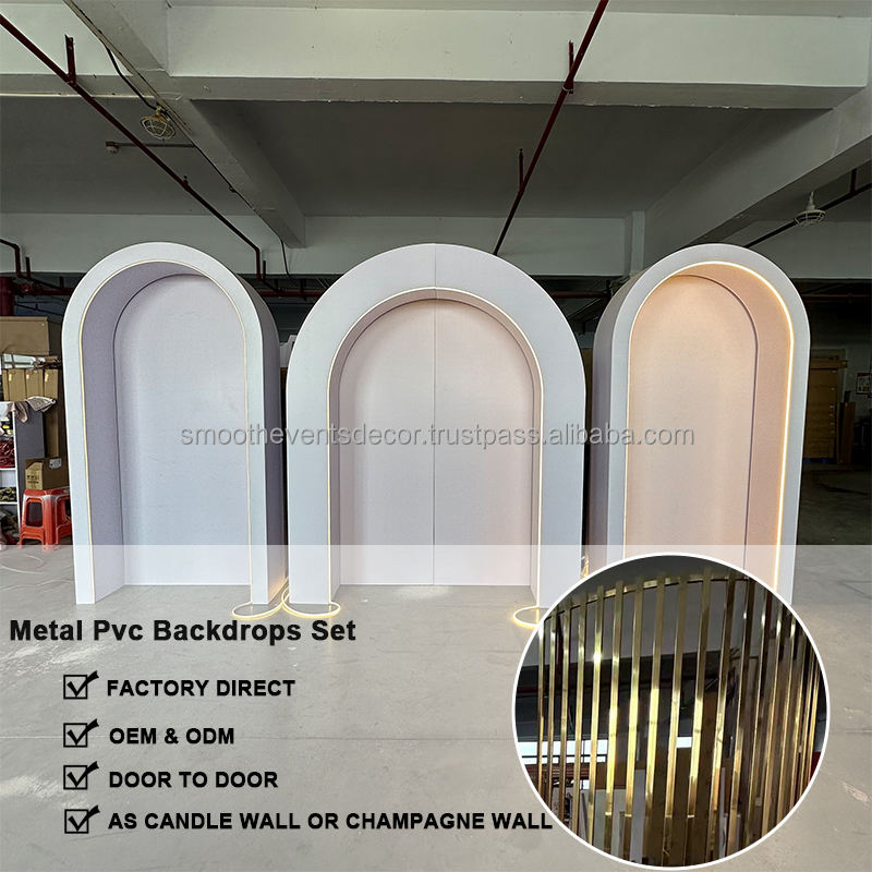 Fondo de Escenario Personalizado para Bodas, Diseño Mixto, Fondo 3D de PVC, Soporte de Arco, Arcos de Metal Dorado para Decoración de Bodas