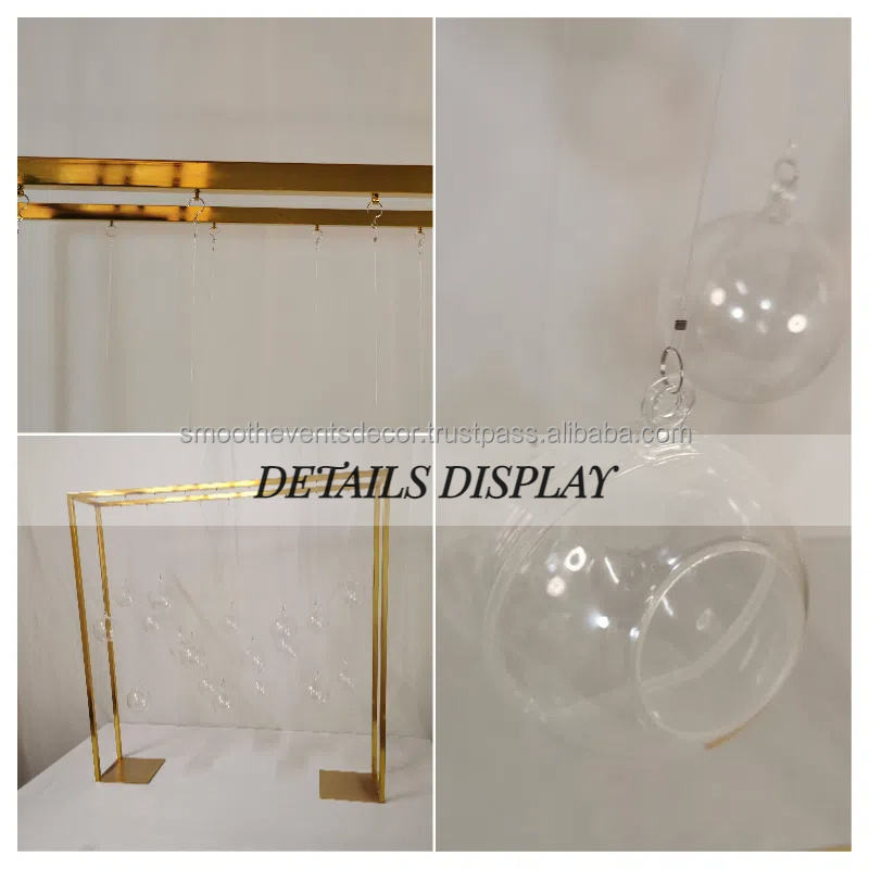 Elegante Soporte de Metal Dorado Personalizado para Flores Colgantes, Centro de Mesa para Decoración de Bodas