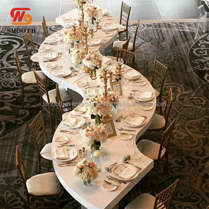 SMOOTH, elegante mesa serpentina, mesa de MDF blanca para boda, mesa de comedor de forma libre para decoración de restaurante